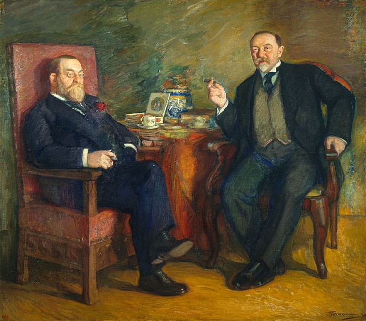 Пастернак Л.О. Портрет О.С. Цетлина и Д.В. Высоцкого. За чашкой кофе. 1913